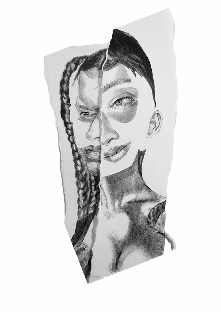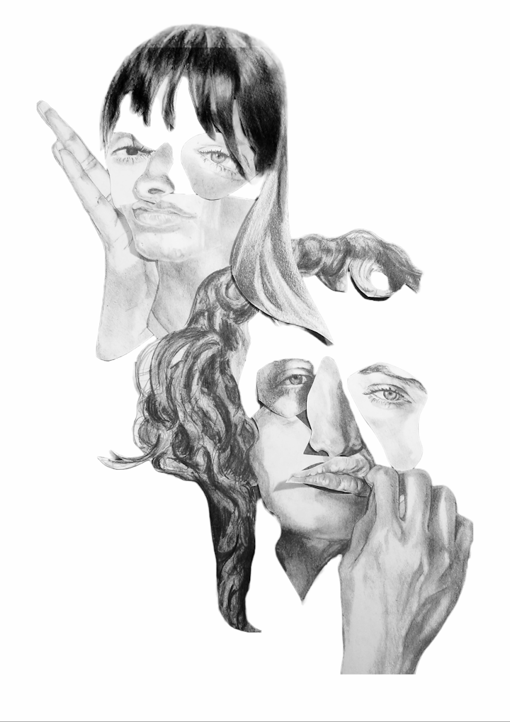 Graphite portraiture has allowed me to study many facial features. After finishing each portrait, I often find myself drawn to a specific feature. I took those features and displayed them in a Mr. Potato Head-esque fashion. Franken-Shorties is a collection of paper collages composed of clippings of graphite portraits from Shortytapes (Deluxe)Vol 1 & 2. Some of the collages have been color-graded using Lightroom.